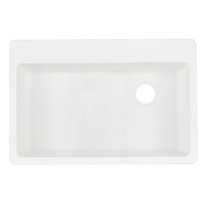 Add to cart 33″ Totten White Granite Composite Kitchen Sink $219.00 MATERIAL: granite composite BASIN SPLIT: single SHAPE: rectangle SINK INSTALLATION: undermount FAUCET CENTERS: no faucet hole NUMBER OF BASINS: 1 PRODUCT COLOR: white