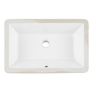 Add to cart Sawgrass Porcelain Rectangular Undermount Bathroom Sink – White $85.00 SHAPE: rectangle SINK MATERIAL: porcelain NUMBER OF BASINS: 1 SINK INSTALLATION: undermount OVERFLOW HOLE: yes LENGTH: 21″ WIDTH: 13-3/8″ HEIGHT: 7-1/8″